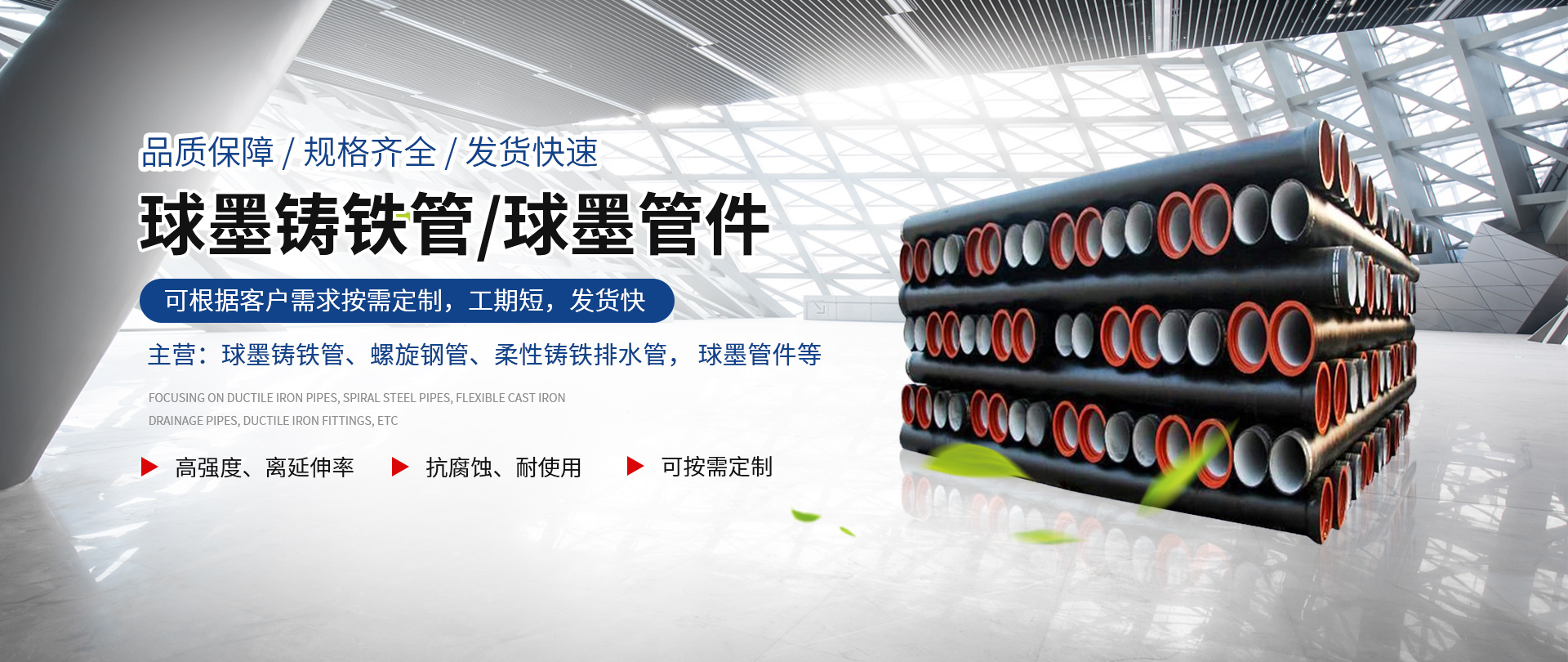 排水用球墨鑄鐵管是鑄鐵的一種,是一種鐵、碳和硅的合金。球墨鑄鐵中石墨是以球狀形式存在的,一...